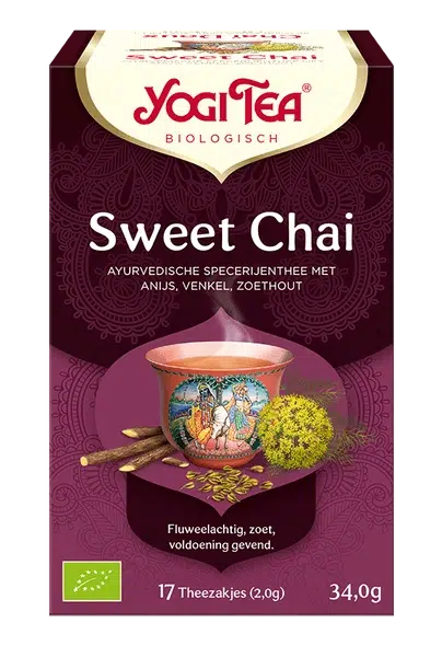 Zoet staat voor het element aarde. Wanneer we even geen grip op dingen hebben, helpt wat natuurlijke zoetheid ons weer te aarden. Dat is het moment voor YOGI TEA® Sweet Chai: mild, zacht en met een fijn uitgebalanceerde scherpte dankzij peper en gember zorgt de smaak van anijs, venkel en specerijen voor een behaaglijk gevoel, tevredenheid en vertrouwen.