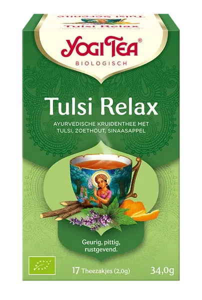 YOGI TEA® Tulsi Relax is een echt juweeltje. Kostbaar tulsi, dat dankzij zijn vele positieve eigenschappen binnen de ayurveda ook “koningin van de kruiden” of “heilige basilicum” wordt genoemd, geeft deze thee zijn bijzondere aroma. Afgerond door de fruitige smaak van sinaasappel en zoethout biedt deze heerlijke theemelange een heilig moment van ontspanning.
